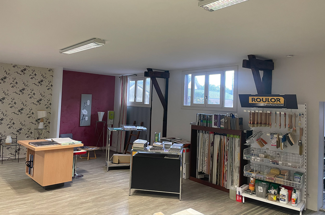 Venez découvrir notre showroom, un espace pensé pour vous inspirer et vous accompagner dans la concrétisation de vos idées. Vous y trouverez plusieurs collections de papier peint et autres revêtements muraux, revêtements de sol, nuanciers et un véritable « mur » de couleurs présentant 224 teintes, qui donne envie de jouer avec la couleur pour créer jusqu’à 6400 harmonies différentes.
